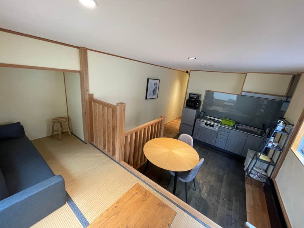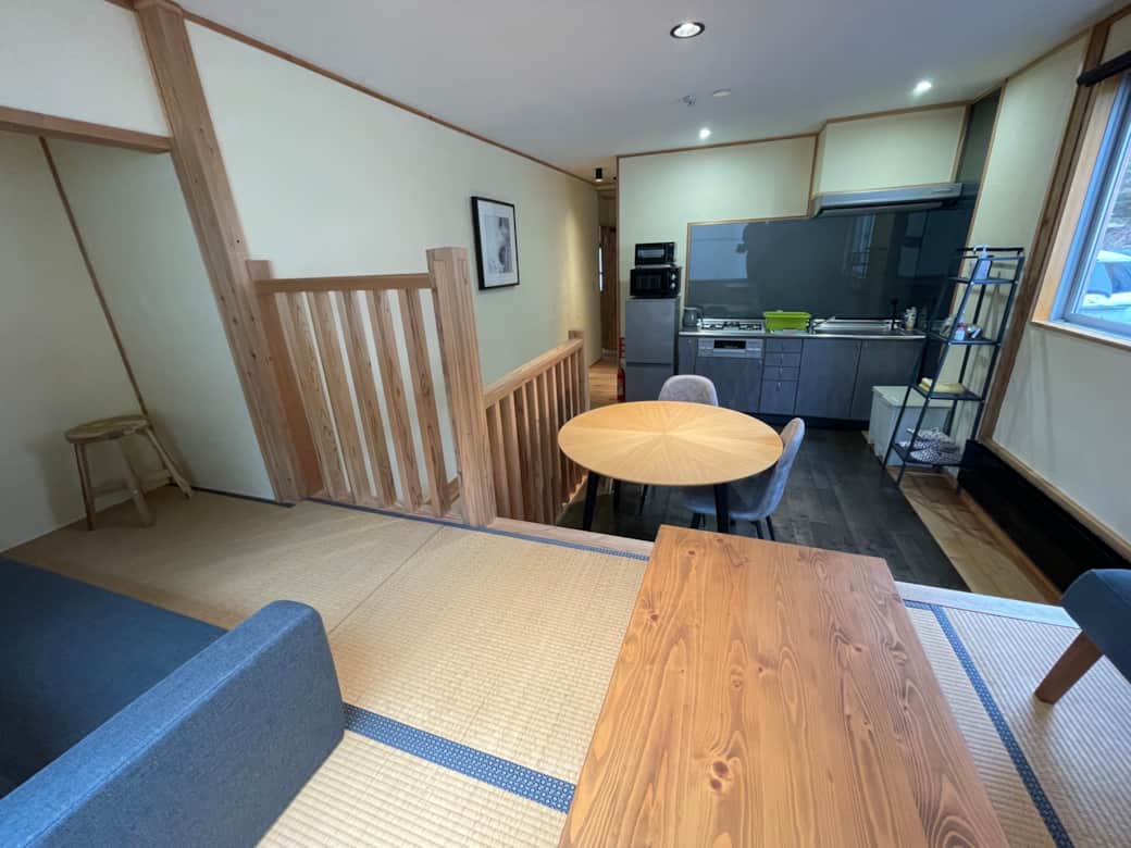 Yubaba House has 5 furnished apartments. Unit 1 is on the ground floor and has 2 single beds in the cozy basement room. The second bedroom has 2 single beds with a great mountain view. In the living room on the Tatami landing, there is a fold-out couch for additional guests. The apartmenthas a fully equipped kitchen with a dining table. Japanese / Western fusion in a great location with all the comfort you need. Perfect for a family of 2ad and 2 kids or a group of friends.